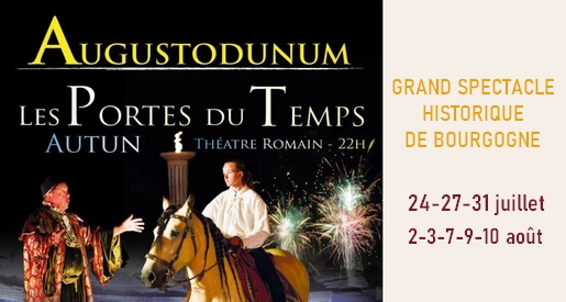 Venez vivre l’incroyable Histoire de la Bourgogne, d’une ville, celle d’Augustodunum devenue Autun avec des centaines de personnages, de somptueux costumes et décors qui vous emporteront dans un tourbillon de 2000 ans d’Histoire ! Vous assisterez à des danses époustouflantes, des actions équestres spectaculaires et une mise en lumière inédite !
