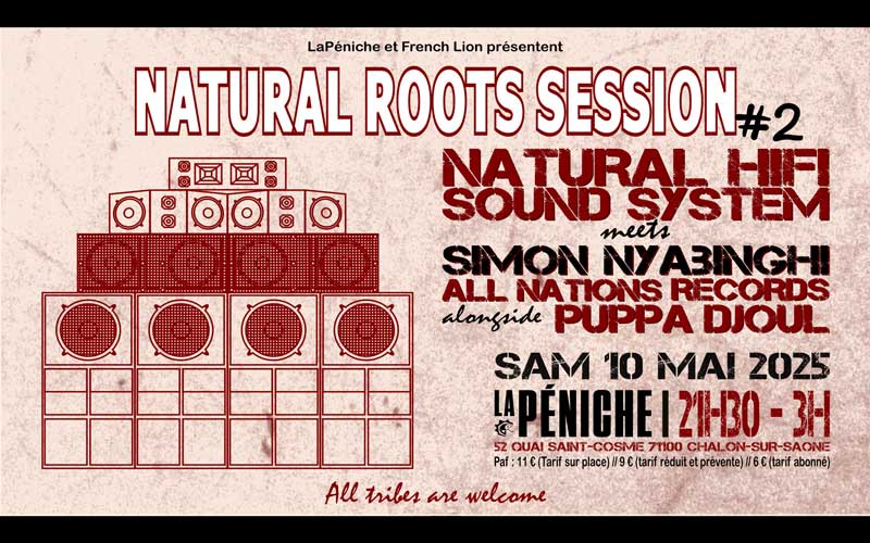 Simon Nyabinghi est un producteur, collectionneur et passionné de reggae et de dub. Activiste du milieu Sound System, il a monté plusieurs labels, (Digital Rockers, Tablet Records, All Nations Records), 2 sound systems: Nyabin Sound System, géré maintenant par Flo Et Tom Chouette, et All Nations Sound System, un tout nouveau projet qui voit le jour en 2025.